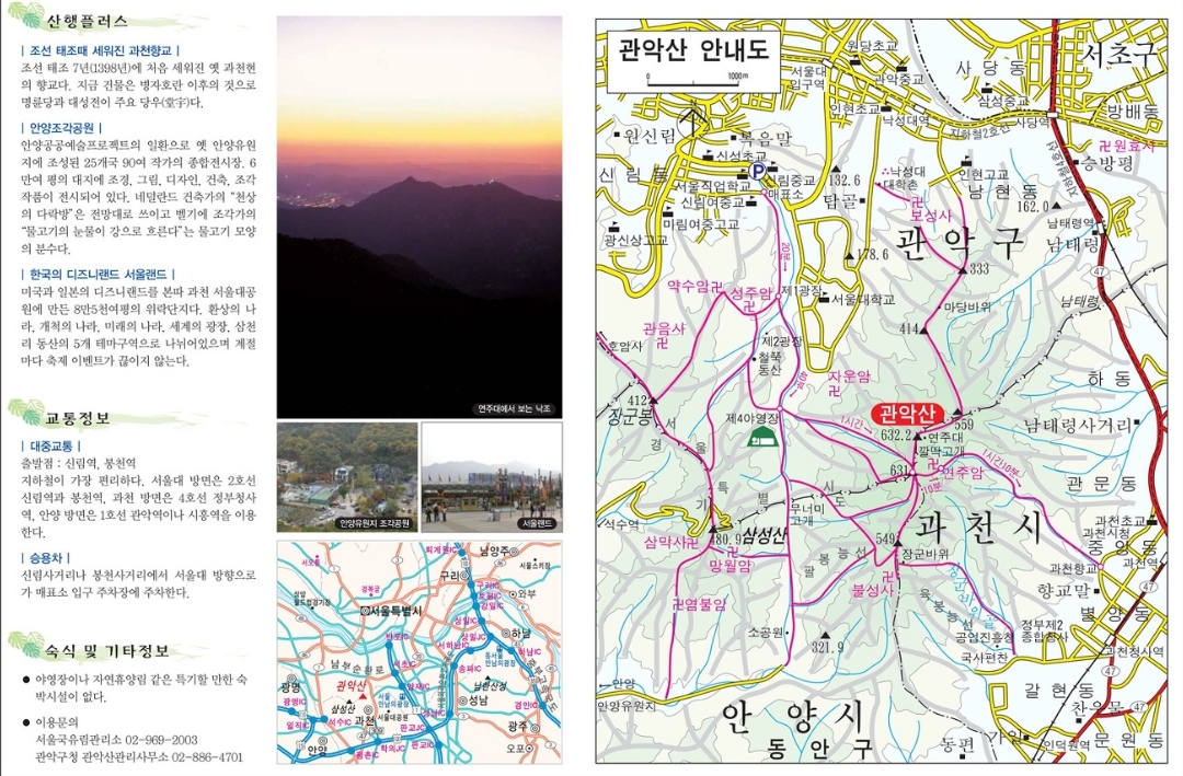 - 행정구역: 서울특별시 관악구, 경기도 과천시, 안양시