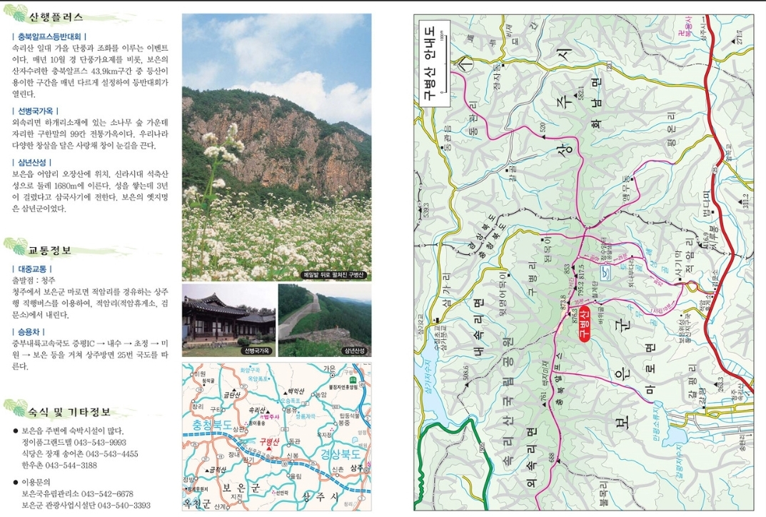 구병산은 그 아름다운 자연경관과 역사적, 문화적 요소로 인해 많은 등산객과 관광객들이 찾는 명소입니다.