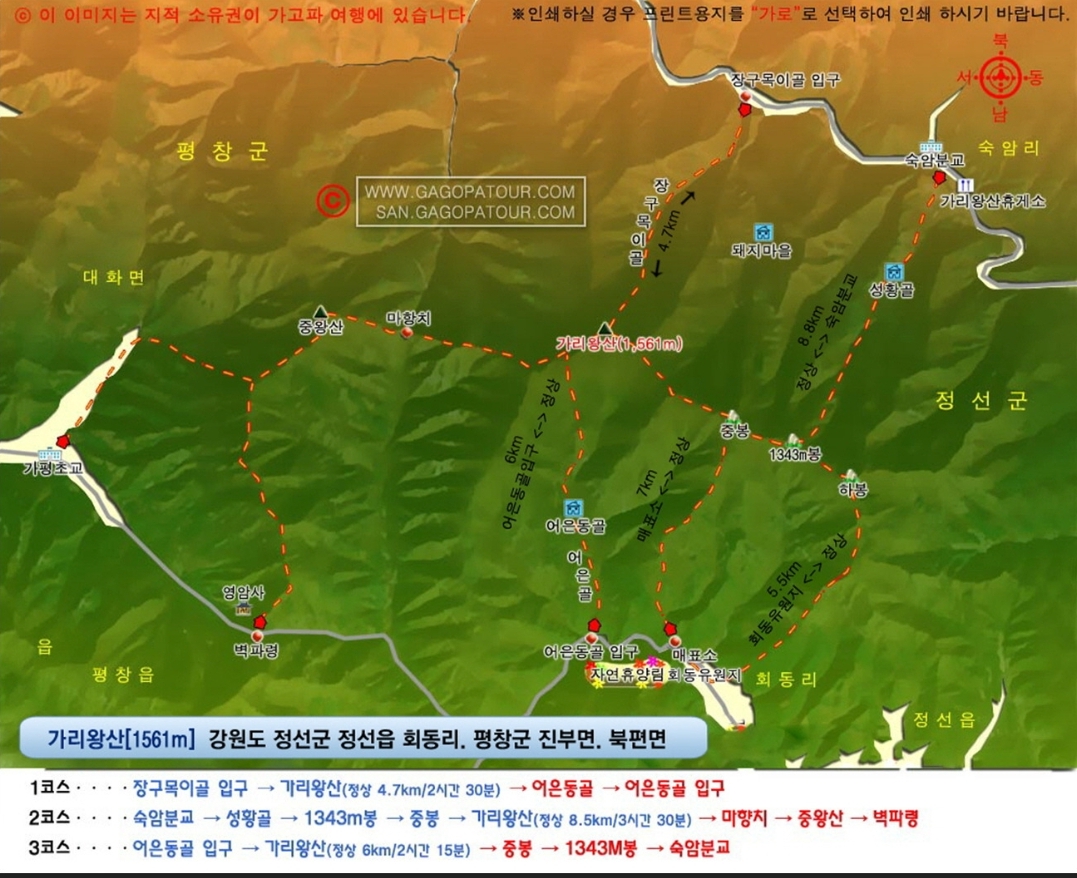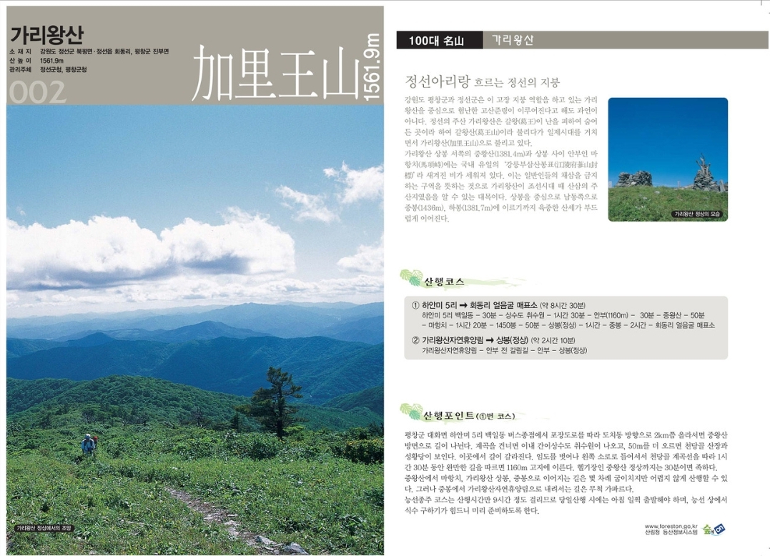강원도 정선군과 평창군에 걸쳐 있는 산으로, 해발 1,561미터의 높이를 자랑합니다. 이 산은 태백산맥의 중심부에 위치해 있으며, 아름다운 경관과 다양한 식생으로 유명합니다.