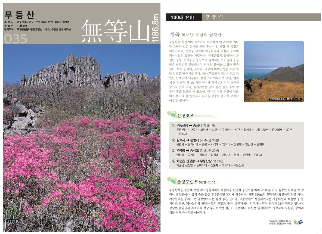 광주광역시 동구와 북구, 전라남도 담양군 남면, 화순군 이서면에 걸쳐 있는 산으로, 높이는 1,187미터입니다. 이 산은 호남을 대표하는 명산으로, 광주광역시와 전라남도의 상징적인 산으로 꼽힙니다.