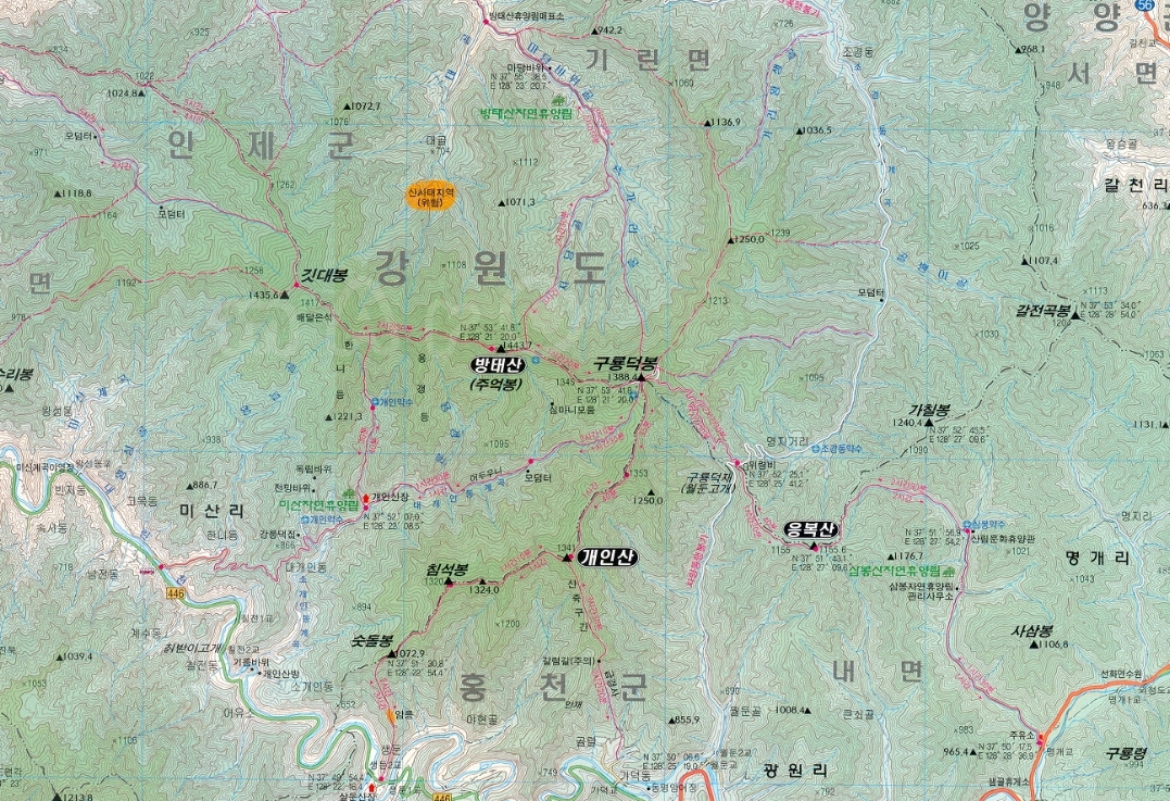 - 행정구역: 강원도 인제군 기린면, 상남면; 홍천군 내면