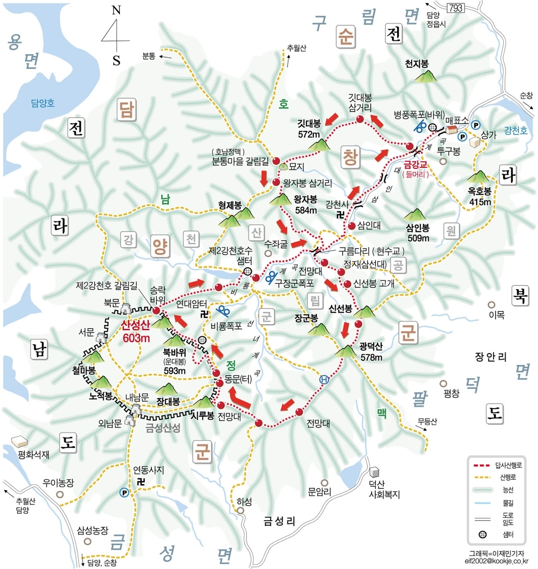 - 행정구역: 전라북도 순창군 팔덕면 청계리, 전라남도 담양군 용면 용산리